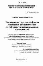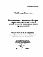 Направления противодействия снижению экономической устойчивости промышленных предприятий тема диссертации по экономике, полный текст автореферата