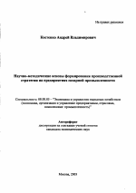Научно-методические основы формирования производственной стратегии на предприятиях сахарной промышленности тема диссертации по экономике, полный текст автореферата