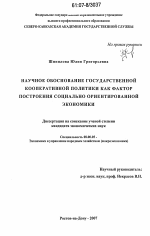 Научное обоснование государственной кооперативной политики как фактор построения социально ориентированной экономики тема диссертации по экономике, полный текст автореферата