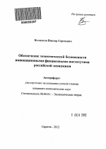 Обеспечение экономической безопасности инновационными финансовыми институтами российской экономики тема диссертации по экономике, полный текст автореферата