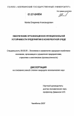 Обеспечение организационно-функциональной устойчивости предприятия в конкурентной среде тема диссертации по экономике, полный текст автореферата