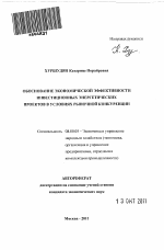 Обоснование экономической эффективности инвестиционных энергетических проектов в условиях рыночной конкуренции тема диссертации по экономике, полный текст автореферата