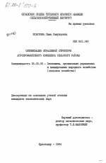Диссертация: введение по экономике, на тему "Оптимизация отраслевой структуры агропромышленного комплекса сельского района"