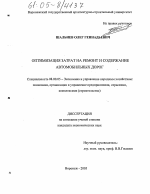 Оптимизация затрат на ремонт и содержание автомобильных дорог тема диссертации по экономике, полный текст автореферата
