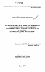 Организационно-экономические механизмы управления процессами внедрения вузовских научно-технических новшеств в системе "вуз-производство-потребитель" тема диссертации по экономике, полный текст автореферата