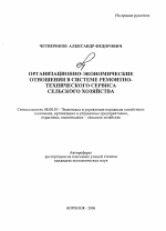 Организационно-экономические отношения в системе ремонтно-технического сервиса сельского хозяйства тема диссертации по экономике, полный текст автореферата