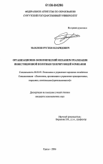 Организационно-экономический механизм реализации инвестиционной политики генерирующей компании электроэнергетики тема диссертации по экономике, полный текст автореферата