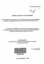 Организационно-экономическое обеспечение использования вторичных ресурсов предприятий целюлозно-бумажной промышленности тема диссертации по экономике, полный текст автореферата