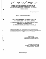 - ОРГАНИЗАЦИОННО-ЭКОНОМИЧЕСКОЕ ОБОСНОВАНИЕ ФОРМИРОВАНИЯ И ФУНКЦИОНИРОВАНИЯ АГРОПРОМЫШЛЕННО-ФИНАНСОВОЙ ГРУППЫ (НА ПРИМЕРЕ КРАСНОЯРСКОГО КРАЯ)
