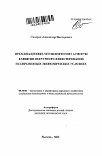Организационно-управленческие аспекты развития венчурного инвестирования в современных экономических условиях тема диссертации по экономике, полный текст автореферата