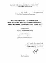 Организационный инструментарий трансформации экономических отношений в сфере жилищно-коммунального хозяйства тема диссертации по экономике, полный текст автореферата