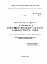 Организация инвестиционной деятельности в коммерческом банке тема диссертации по экономике, полный текст автореферата