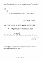 Славянская Н.Г. Организация лизинговых отношений на предприятиях У