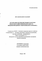 ОРГАНИЗАЦИЯ СИСТЕМЫ ВНУТРЕННЕГО КОНТРОЛЯ ФИНАНСОВО-ХОЗЯЙСТВЕННОЙ ДЕЯТЕЛЬНОСТИ ПРЕДПРИЯТИЙ ЯДЕРНОГО ЭНЕРГЕТИЧЕСКОГО КОМПЛЕКСА