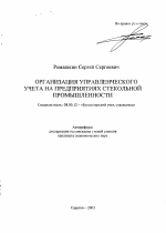 Организация управленческого учета на предприятиях стекольной промышленности тема диссертации по экономике, полный текст автореферата