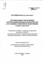 Организация управления агропромышленным комплексом в условиях рыночной экономики тема диссертации по экономике, полный текст автореферата