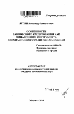 Особенности банковского кредитования как финансового инструмента инновационного развития экономики тема диссертации по экономике, полный текст автореферата