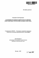 Особенности демографического развития приграничных территорий Дальнего Востока тема диссертации по экономике, полный текст автореферата