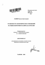 Особенности экономических отношений на рынке венчурного капитала в России тема диссертации по экономике, полный текст автореферата