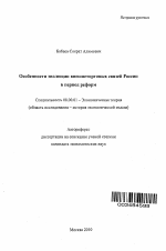 Особенности эволюции внешнеторговых связей России в период реформ тема диссертации по экономике, полный текст автореферата