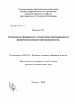 Особенности финансового обеспечения инновационного развития российской промышленности тема диссертации по экономике, полный текст автореферата