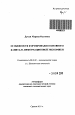 Особенности формирования основного капитала информационной экономики тема диссертации по экономике, полный текст автореферата