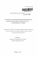 Автореферат диссертации по теме "Особенности формирования сбытовой политики нефтяных компаний Хабаровского края в современных условиях"