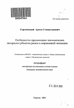 Особенности гармонизации экономических интересов субъектов рынка в современной экономике тема диссертации по экономике, полный текст автореферата