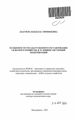 Особенности государственного регулирования сельского хозяйства в условиях системной модернизации тема диссертации по экономике, полный текст автореферата