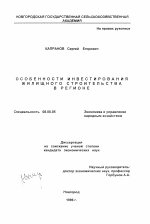Особенности инвестирования жилищного строительства в регионе тема диссертации по экономике, полный текст автореферата