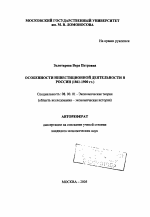 Особенности инвестиционной деятельности в России тема диссертации по экономике, полный текст автореферата