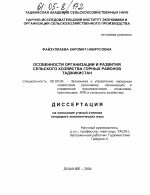 Особенности организации и развития сельского хозяйства горных районов Таджикистана тема диссертации по экономике, полный текст автореферата