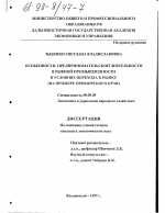 Особенности предпринимательской деятельности в рыбной промышленности в условиях перехода к рынку тема диссертации по экономике, полный текст автореферата