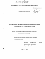 Особенности реализации внешнеэкономической политики на региональном уровне тема диссертации по экономике, полный текст автореферата