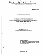 Особенности регулирования инвестиционных процессов в свободных экономических зонах тема диссертации по экономике, полный текст автореферата