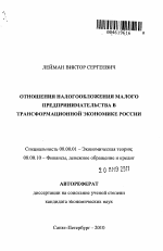 Отношения налогообложения малого предпринимательства в трансформационной экономике России тема диссертации по экономике, полный текст автореферата