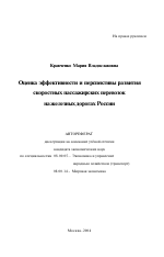 Оценка эффективности и перспективы развития скоростных пассажирских перевозок на железных дорогах России тема диссертации по экономике, полный текст автореферата