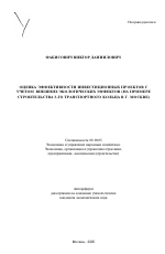 Автореферат диссертации по теме "Оценка эффективности инвестиционных проектов с учетом внешних экологических эффектов"