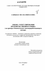 Оценка и регулирование продовольственного рынка тема диссертации по экономике, полный текст автореферата
