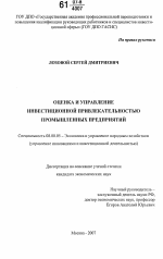 Оценка и управление инвестиционной привлекательностью промышленных предприятий тема диссертации по экономике, полный текст автореферата