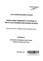 Оценка инвестиционного потенциала негосударственных пенсионных фондов тема диссертации по экономике, полный текст автореферата