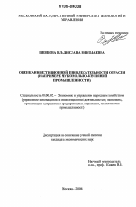 Оценка инвестиционной привлекательности отрасли тема диссертации по экономике, полный текст автореферата