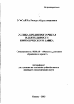 Оценка кредитного риска в деятельности коммерческого банка тема диссертации по экономике, полный текст автореферата