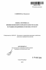 Оценка потенциала внешнеэкономической деятельности малых и средних предпринимательских структур тема диссертации по экономике, полный текст автореферата