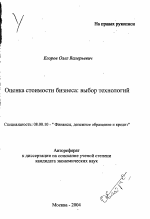 Автореферат диссертации по теме "Оценка стоимости бизнеса: выбор технологий"