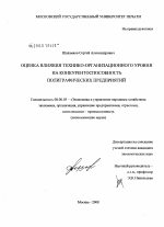 Оценка влияния технико-организационного уровня на конкурентоспособность полиграфических предприятий тема диссертации по экономике, полный текст автореферата