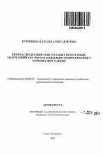Перераспределение обязательных пенсионных накоплений как фактор социально-экономического равновесия в регионе тема диссертации по экономике, полный текст автореферата