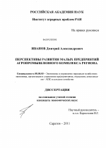Перспективы развития малых предприятий агропромышленного комплекса региона тема диссертации по экономике, полный текст автореферата