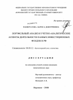 Научная новизна диссертационного исследования состоит в теоретико-методическом обосновании, практической разработке и решении комплекса вопросов, связанных с совершенствованием методик анализа и бухгатерского учета в паевых инвестиционных фондах.
