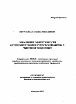 Повышение эффективности функционирования туристской фирмы в рыночной экономике тема диссертации по экономике, полный текст автореферата